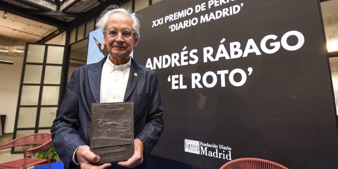 El viñetista y pintor Andrés Rábago, El Roto, ha recibido el XXI Premio de Periodismo “Diario Madrid” en reconocimiento a una trayectoria ejemplar de más de medio siglo, en la que ha retratado con lucidez, independencia y un humor profundamente cervantino las inquietudes y contradicciones de la sociedad española.