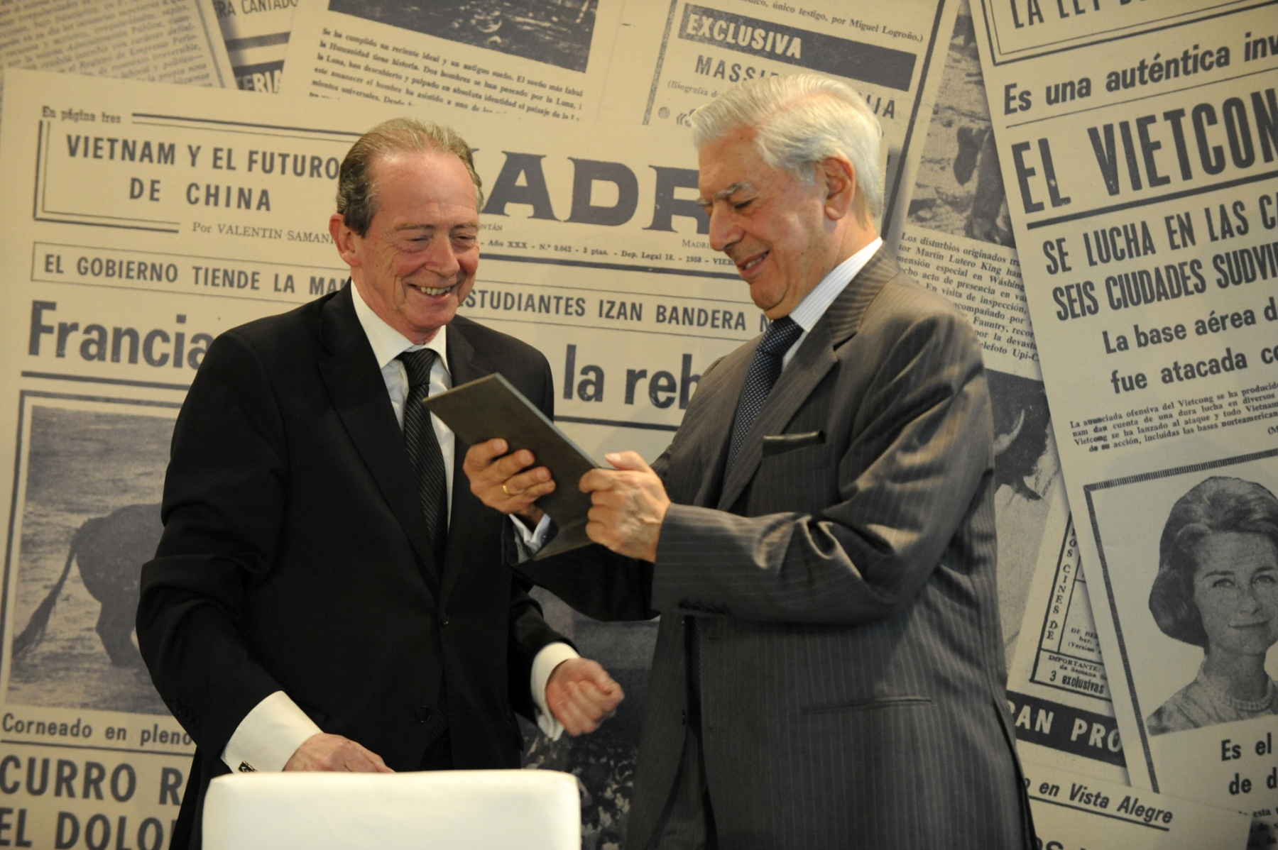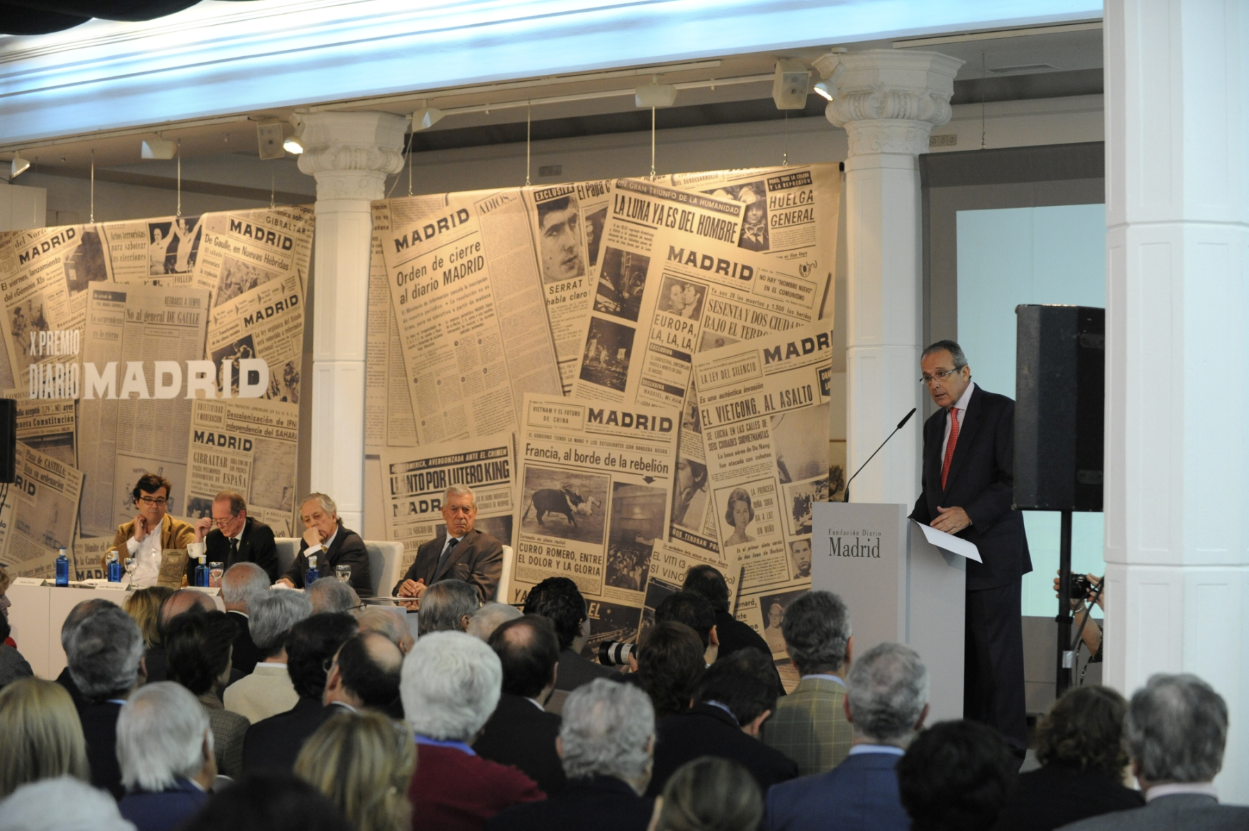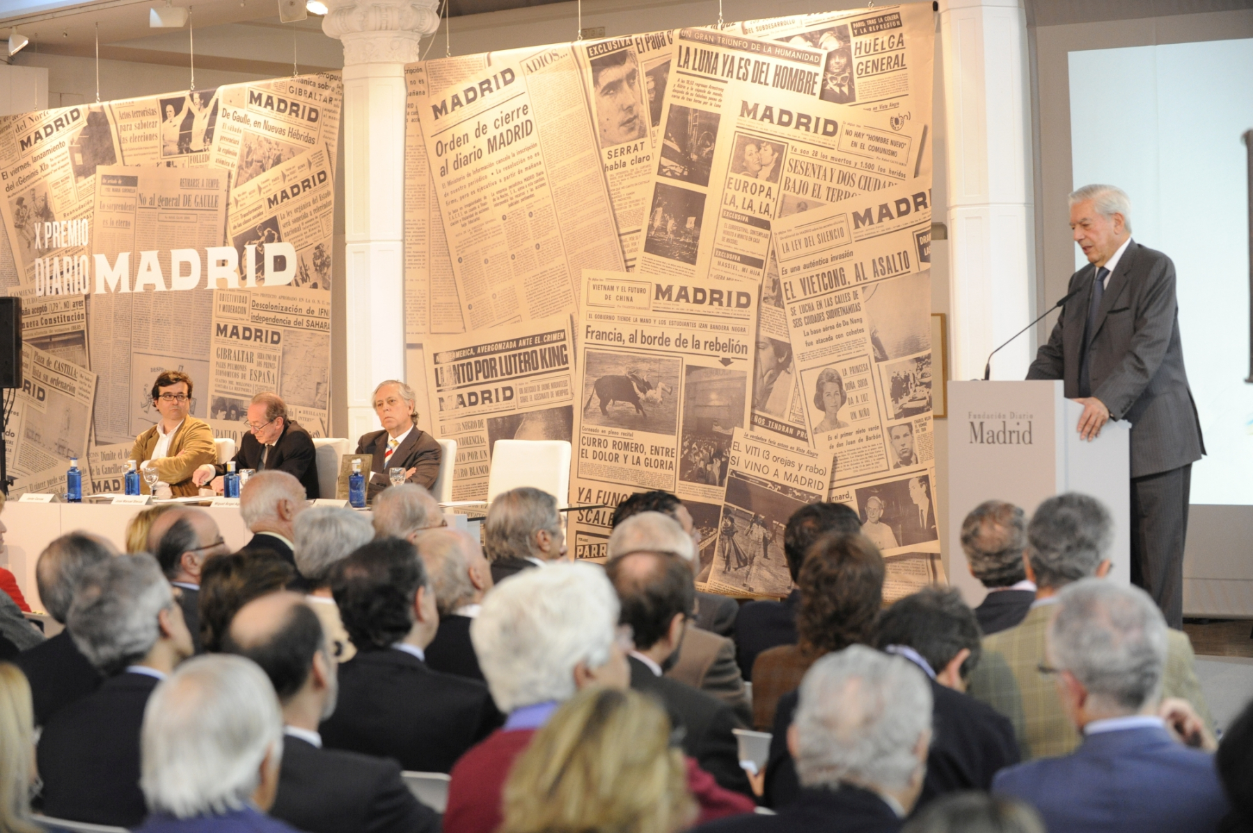 El escritor y periodista Mario Vargas Llosa recogió el Premio de Periodismo ‘Diario Madrid’, que concede la Fundación Diario Madrid, en su décima edición, el 5 de mayo de 2011, de manos del director de la Real Academia Española, José Manuel Blecua. La “laudatio” del premiado fue leída por el escritor Javier Cercas. En representación de la Fundación Diario Madrid intervinieron sus vicepresidentes Miguel Ángel Aguilar y José Vicente de Juan. Miguel Ángel Aguilar saludó la presencia física de Vargas Llosa, a quien dijo encontrar “en plena forma, aunque el Nobel es ir con la cruz a cuestas”. Las palabras laudatorias de Javier Cercas colocaron a Vargas “en un lugar literario inaccesible para los demás”. “Los artículos periodísticos –añadió- son su principal instrumento de intervención pública”, para terminar sentenciosamente con una declaración en la que dijo que “como novelista solo es comparable a los grandes, como periodista también”.