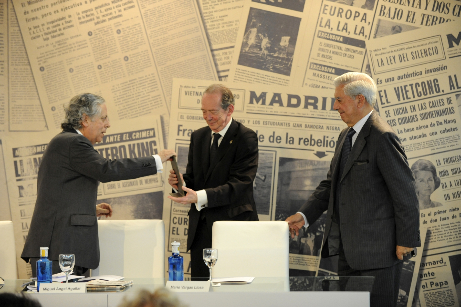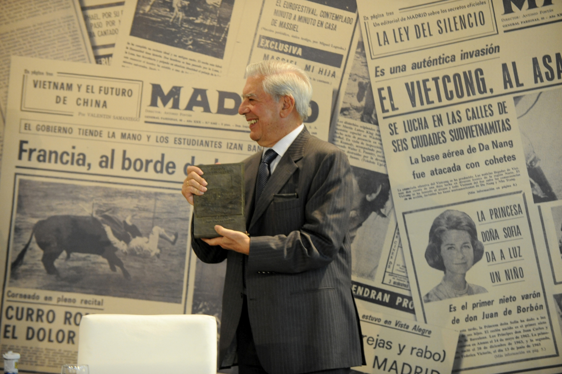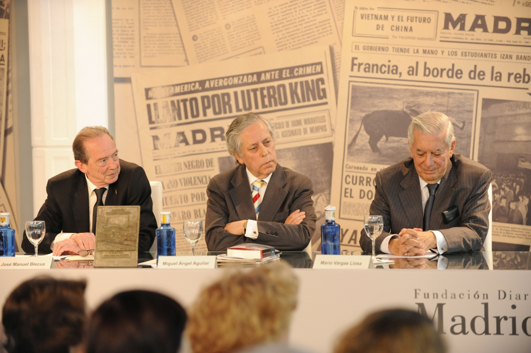El escritor y periodista Mario Vargas Llosa recogió el Premio de Periodismo ‘Diario Madrid’, que concede la Fundación Diario Madrid, en su décima edición, el 5 de mayo de 2011, de manos del director de la Real Academia Española, José Manuel Blecua. La “laudatio” del premiado fue leída por el escritor Javier Cercas. En representación de la Fundación Diario Madrid intervinieron sus vicepresidentes Miguel Ángel Aguilar y José Vicente de Juan. Miguel Ángel Aguilar saludó la presencia física de Vargas Llosa, a quien dijo encontrar “en plena forma, aunque el Nobel es ir con la cruz a cuestas”. Las palabras laudatorias de Javier Cercas colocaron a Vargas “en un lugar literario inaccesible para los demás”. “Los artículos periodísticos –añadió- son su principal instrumento de intervención pública”, para terminar sentenciosamente con una declaración en la que dijo que “como novelista solo es comparable a los grandes, como periodista también”.